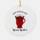 Warm wünscht heiße Schokolade Urlaub Keramik Ornament. Personalisieren Sie den benutzerdefinierten Text oben. Die Hintergrundfarben dieser Karte können ebenfalls angepasst werden. Weitere Koordinationsgegenstände finden Sie in unserer "Ferienrezepte" Kollektion.