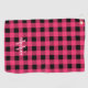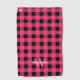 Hot rosa Büffel Karo bedruckte Golfhandtuch mit Ihrem ersten in blassrosa und Nachname in weiß.