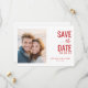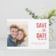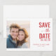 Diese Hochzeit-Save-the-Date-Karte zeigt ein geteiltes Layout mit einem weich fokussierten Foto auf einer Seite, das einen intimen Moment zwischen zwei Personen in warmen Sonnenuntergangstönen einfängt. Die rechte Seite zeigt eine kühne, moderne Typografie in tiefroten Farbtönen, die wichtige Details wie "SAVE THE DATE" und anpassbare Namen und Orte hervorhebt. Das Design verbindet Realismus mit Eleganz und verwendet saubere Linien und negativen Raum für ein ausgewogenes, einladendes Aussehen, das den Ton für eine unvergessliche Feier setzt. Perfekt für Paare, die einen anspruchsvollen und dennoch persönlichen Touch für ihre große Ankündigung suchen.