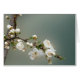 Weiße Frühlingsblumen auf aquamarin orangefarbenem Hintergrund