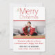 Diese moderne Urlaubskarte schickt Ihrer Familie und Freunden wärmste Wünsche für ein frohes Weihnachtsfest und ein glückliches Neues Jahr. Passen Sie mit Ihrem horizontalen Foto, persönlichem Gruß, Familiennamen und individuellen Namen an. Die Karte kehrt zu einem fröhlichen rot-weißen "Frohen Weihnachten" Muster zurück. Feiern Sie die Saison mit dieser stilvollen Urlaubskarte von Cherry Lane Designs!