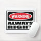 Warnen von IMMER RECHTEM Mousepad