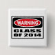Warnende KLASSE VON Knopf 2014, den Sie bei www.WarningSignShirts.com besonders anfertigen können und ein rotes und schwarzes Warnzeichen und eine KLASSE 2014 in den mutigen gotischen Schriften, die Welt zu warnen kennzeichnen. Sie können Ihren eigenen Warnzeichen Knopf mit dem Text auch besonders anfertigen, den Sie wollen.