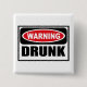 Warnender BETRUNKENER Knopf, den Sie bei www.WarningSignShirts.com besonders anfertigen können und ein rotes und schwarzes Warnzeichen und ein BETRUNKEN in den mutigen schwarzen Buchstaben kennzeichnen, die Welt zu warnen. Sie können Ihren eigenen Warnzeichen Knopf mit dem Text auch besonders anfertigen, den Sie wollen.