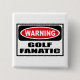 Warnendes GOLF FANATISCHER Knopf, den Sie bei www.WarningSignShirts.com besonders anfertigen können und einen roten und schwarzen Warnzeichen und GOLF-FANATIKER in den mutigen gotischen Schriften, die Welt zu warnen kennzeichnen. Sie können Ihren eigenen Warnzeichen Knopf mit dem Text auch besonders anfertigen, den Sie wollen.