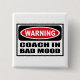 Warnender TRAINER IN SCHLECHTEM STIMMUNG Knopf, den Sie bei www.WarningSignShirts.com besonders anfertigen können und ein rotes und schwarzes Warnzeichen und einen TRAINER IN DER SCHLECHTEN STIMMUNG in den mutigen gotischen Schriften, die Welt zu warnen kennzeichnen. Sie können Ihren eigenen Warnzeichen Knopf mit dem Text auch besonders anfertigen, den Sie wollen.
