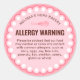 Feminine rosa und weiße Lebensmittel Sicherheit Allergene Warnhinweis Etikett mit gürlich rosa Retrorahmen, kühnen Schriftart und einem Whiskymbol. Dieser elegante Backenschutzaufkleber kann für jede Art von Lebensmitteln verwendet werden - fügen Sie einfach Ihren Text und Ihren Firmennamen hinzu und erstellen Sie für Ihre Zuhause-Bäckerei individuelle Allergene-Checklisten. Wichtig! Doppelter Karo aller Inhalte, um sicherzustellen, dass sie den lokalen Bestimmungen entsprechen. Der Platzhaltertext ist nur eine Anleitung.