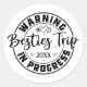 Warning Besties Trip in Progress Black on White Runder Aufkleber