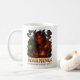 Add some explosive personality to your morning brew with this fiery fantasy mug featuring a wild-eyed alchemist and the bold warning: