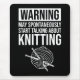 Warning - May Spontaneously Start Talking About Knitting. This funny & cute knitting design would be a great knitting lover gift for the knitter in your life. Perfect for men, women, girls, boys, teens & kids who love to knit & craft and love yarn! If knitting is your hobby, you're a yarn lover and you love crafting with knitting needles and balls of yarn, then this knitter accessory is for you!