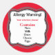 Aufkleber für Allergiewarnzeichen mit zeichnend Zeichentrickcharakter. Warnung vor Lebensmittelallergien.