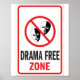 Lass allen, dass du eine dramatische Freizone errichtet hast — kein Drama hier erlaubt. Ein sonniges Warnzeichen mit Dramasken in einem roten Schrägstrich.