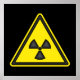 Schwarzes Poster mit gelben und schwarzen Warnschildern für die Strahlung.