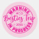 Warnung Besties Trip in Progress Magenta auf Rosa Runder Aufkleber