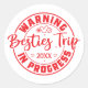 Warnung Besties Trip in Progress Red on White Runder Aufkleber