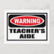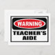 Warnung TEACHER'S AIDE Postcard können Sie anpassen unter www.WarningSignShirts.com und verfügt über ein rotes und schwarzes Warnschild und TEACHER'S AIDE in fett schwarzen Buchstaben, um die Welt zu warnen. Sie können auch Ihr eigenes Warnzeichen Postcard mit dem gewollt Text anpassen.