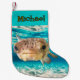 Mit diesem niedlichen und sonderbaren Weihnachtsfest-Strumpf mit einem zauberhaften, unverpufften Puffer-Fisch lassen Sie Ihren Feierlichkeiten einen Augenblick im Meer verbringen! Dieser Strumpf ist perfekt für Ozeanliebhaber, Strandhütten oder Lieben, die Meerestiere lieben. Egal, ob Sie die Säle mit einem Küstenstreifen bespannen oder etwas wirklich Einzigartiges schenken, dieser Ozean inspiriert Strumpf wird die ganze Saison über Wellen machen. Erhältlich in verschiedenen Stoffstilen und bereit für die Personalisierung!