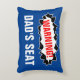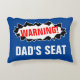 Warnung Vaters Seat Happy Vatertag Geschenk werfen Kissen. Ein cooles, gerissenes Loch-Vorsichtsschild mit einem sonnigen Kissen. Blau oder benutzerdefinierte Hintergrundfarbe. Große, mutige Typografie. Holen Sie sich einen für Papa, Opa, Ehemann etc. Maskuline Designs für ihn. Wohngestaltung Accessoires für den Lieblingssessel des Vaters.