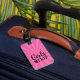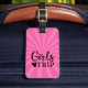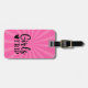 Warnung für Mädchen, die mit rosafarbenem Hutgepäc Gepäckanhänger