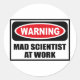 Warnung MAD SCIENTIST AM ARBEITSAUFkleber Runder Aufkleber