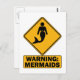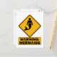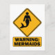 Dieses diamantförmige Warnzeichen zeigt die Silhouette eines Meerjunges mit dem Text unten "Warnung: Mermaids".