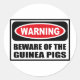 Warnung BEWARE DER GUINEA PIGS Sticker können Sie anpassen unter www.WarningSignShirts.com und verfügt über ein rotes und schwarzes Warnzeichen und BEWARE OF THE GUINEA SCHWEINE in fett schwarzen Buchstaben, um die Welt zu warnen. Sie können auch Ihren eigenen Warnzeichenaufkleber mit dem gewollt Text anpassen.