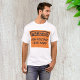 Auf einem orangefarbenen Hintergrund behielt eine Warnhochspannung in schwarz. Dieses Design sieht auf diesem Mens T - Shirt wirklich effektiv aus