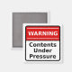 Warnung - Inhalt unter Druck - quadratischer Magnet mit roter, weißer und schwarzer Ausführung.