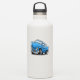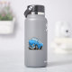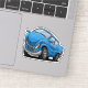 A vivid blue hyper-warped cartoon car with an inflated left side, compressed right side, oversized uneven wheels, twisted bumper, stretched mirrors, and bold highlight arcs. Perfect for fans of distorted cars, playful toon vehicles, and creative automotive artwork.