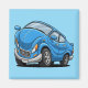 A vivid blue hyper-warped cartoon car with an inflated left side, compressed right side, oversized uneven wheels, twisted bumper, stretched mirrors, and bold highlight arcs. Perfect for fans of distorted cars, playful toon vehicles, and creative automotive artwork.