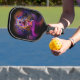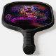 Pickleball Paddel mit dem Bild eines Neonkriegers Meerjungfrau vor schwarzem Hintergrund.