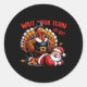 Warten Sie, bis Sie sich fat Boy Turkey Santa Funn Runder Aufkleber