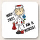 Eine niedliche Knobby-Cartoon Krankenschwester und Text, die lautet Why Yes I Bin A Nurse auf Krankenschwestern T - Shirt, Holodies, Tasse, Schlüsselketten, Magnete, Karten, Aufkleber, Wanduhren, Kissen, und andere Krankenschwestern Kleidung und Geschenke.