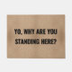 Fügen Sie eine Touch Spaß zu Ihrer Zuhause mit der Tür "Yo, Warum sind Sie hier Stehend?" hinzu. Dieses elegante und langlebige Matt ist perfekt geeignet, um die Gäste mit einem Lächeln willkommen zu heißen. Es behalte Dreck im Freien und verleiht Ihrem Eingang eine Persönlichkeit - eine tolle Geschenkidee für Hauswärme, Geburtstage oder für alle, die Zuhause Dekor Lieben haben.