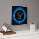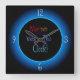 Eine Uhr mit tiefblauem Hintergrund und einem blauen Aquakulturkreis. Text in Regenbogenfarben lautet "Was auch immer, beobachten Sie diese Uhr" Humoristische Bezugnahme auf Menschen, die immer zu spät sind. Erhältlich in quadratischen und runden Formen.