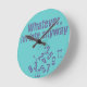 Diese Wanduhr ist es sagt kundengerecht, was auch immer, Im spät irgendwie mit einem Stapel von Zahlen in der unteren Ecke. Sie können Farbe der Uhr und der Benennung ändern