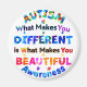 Das inspirierende Zitat von "Was Sie anders macht, ist, was Sie wunderbar macht" mit einzigartigen und wunderschönen Autismus-Rätsel, und Blume zur Unterstützung und Befürwortung von Autismus Bewusstsein.