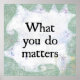 Ein motivierend inspirierendes Typografie-Design mit den Worten "Was Sie tun zählt" auf abstraktem, weißem und hellgrünem Hintergrund.