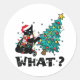 WAS Funny Black Cat Santa Pushing Weihnachtsbaum Runder Aufkleber