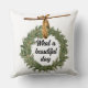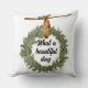 Ein hübscher Kranz aus Tanne und die Worte: Was für ein schöner Tag. Klicken Sie auf Personalisieren, um die Wörter in andere kurze Wörter umzuwandeln, oder kaufen Sie sie wie besehen.