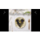 Schöne, in Gold und Weiß gestaltete Handventilatoren, die perfekt für Ihren Hochzeitstag sind. Diese Handventilatoren haben ein gedrucktes Bild eines Acrylgemäldes von zwei goldenen Hochzeitsringen in einem goldförmigen Herz.
