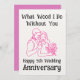 Diese überaus einzigartige und durchdachte Grußkarte ist der perfekte Weg, um Ihre Liebe und Wertschätzung für Ihren Ehemann zu Ihrem 5. Hochzeitstag zu zeigen. Diese 12x18 inch Card aus den USA von Lemon Loco wurde mit einem spielerischen Witz - "What Wood I Do Without You" - entworfen, der das traditionelle 5-Jubiläum-Geschenk aus Holz geschickt in sich vereint.