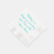 Leider ist beim Bestellvorgang nicht die Größe angegeben, zumindest habe ich es nicht gesehen. Der Name "Duschen"-Servietten ist etwas seltsam :-) Aber man kann aus verschiedenen Designs auswählen und es sieht ganz nett aus. Ich würde mir aber noch viel mehr verschiedene Farben und Muster wünschen! Insgesamt eine nette Idee für ein personalisiertes Accessoire zu allen möglichen Feiern. Der Druck ist OK, er ist nur ganz leicht unscharf.