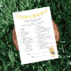 Ein lustiges Spiel für die Babydusche ist das Was ist auf Ihrem Handy? Spiel. Dieses Spiel enthält oben ein gelbes Banner und einen Teddybär mit einer Biene. Auf der Rückseite ist ein Junge Teddy Bär, der auf einem Honigfass aufbaut und eine Honigbiene mit Vorlagen beobachtet.