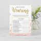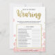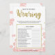 Dieses moderne Blumenspiel "What is the Bride Wearing" mit einem rosa Blumenhintergrund mit goldenen Glitzer. Der Text ist in einem Mix aus einem spielerischen Kalligraphie-Schriftart und einem modernen sans-Schriftart geschrieben, diese Karte ist personalisiert mit dem zukünftigen Namen und dem Brautparty.