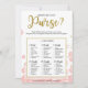 Dieses moderne, blumengeschmückte "What's In Your Purse" besticht durch einen rosa Blumenhintergrund mit goldenen Glitzer. Der Text ist in einer Mischung aus einem spielerischen Kalligraphie-Schriftart und einem modernen sans-Schriftart, dieses Was ist in Ihrer Purse-Karte ist personalisiert mit dem zukünftigen Namen und dem Brautparty.