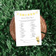 Ein lustiges Spiel für die Babydusche ist das Was ist in Ihrer Handtasche? Spiel. Dieses Spiel enthält oben ein gelbes Banner und einen Teddybär mit einer Biene. Auf der Rückseite ist ein Junge Teddy Bär, der auf einem Honigfass aufbaut und eine Honigbiene mit Vorlagen beobachtet.