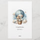 Abenteuer thematisch "What's In Your Purse", Baby-Duschspielkarte mit einem hübschen weißen Welpe, der einen Teddybär in einem blauen Heißluftballon hält. Der blau-blaue Himmel hat weiße Wolken mit umliegenden goldenen Sternen. Vorlagen auf der Rückseite.