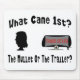 Das Hinterwäldlerprofil, das eine perfekte Meeräsche des Bildes mit Phrase, "was zur Schau trägt, kam 1.? Die Meeräsche oder der Anhänger?" geschrieben über und unter in gebogenem Schwarzem u. in Rot überlagerte Schriftart. Und ein einfacher Anhänger mit Wörtern, "Anhänger-Anwesen" geschrieben auf eine Seitenfahne auf der links Handseite.