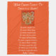 Die Kunst präsentiert den "Orange Angel" der Angel Color Series. Das ist das Gemälde des Schutzengels Weiß, Gold und Orange, das aus einer Reihe von sieben Engelbildern verschiedener Leinwand stammt. Engel in der Serie sind weiße, gelbe, grüne, blaue, lila, rote und orangefarbene Engel. Wählen Sie Ihre persönliche Schutzengelengelfarbe! Die Gedichtworte sagen: "Was Krebs nicht tun kann, Krebs ist so begrenzt... Es kann die Liebe nicht verkrüppeln. Es kann die Hoffnung nicht zerschmettern. Sie kann den Glauben nicht korrodieren. Es kann den Frieden nicht zerstören. Es kann keine Freundschaft(en) töten. Es kann Erinnerungen nicht unterdrücken. Es kann den Mut nicht zum Schweigen bringen. Es kann nicht in das Soul eindringen. Es kann nicht ewiges Leben stehlen. Es kann den Geist nicht besiegen. -Autor unbekannt" Machen Sie individuelle Vlies für sich selbst oder als Geschenk für einen geliebten Menschen. Fügen Sie Ihre eigenen Worte oder Bilder zu dieser weichen Decke für besondere Krebsgeschenke hinzu.